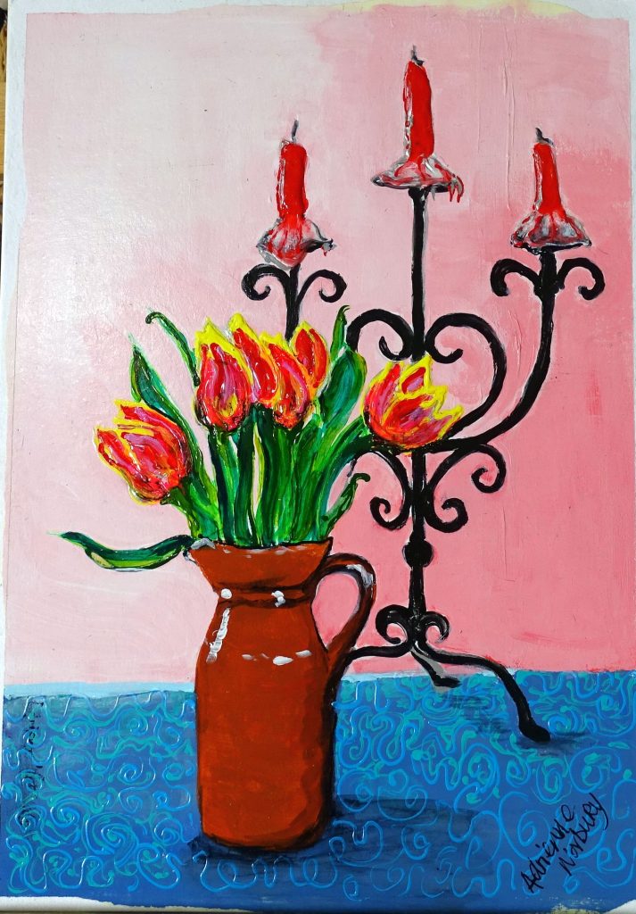Light me up,’ acrylic paint on paper. framed A3, £200, currently on display at Pip’s gallery in Hastings.