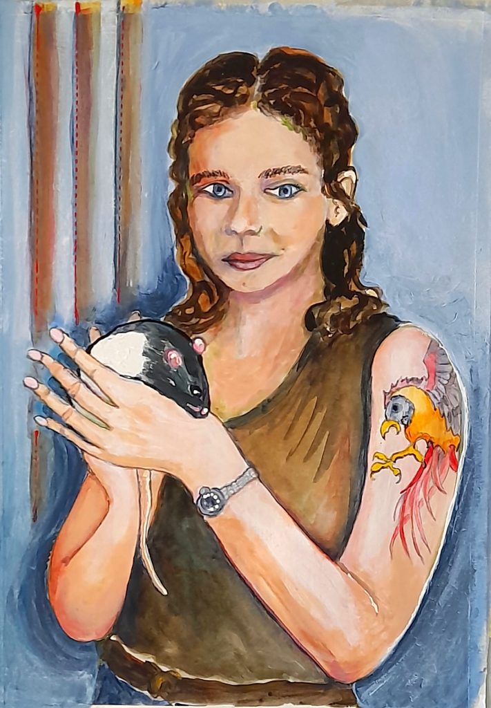 ‘Mickey, the bravest mouse on the shelf’ acrylic on paper.